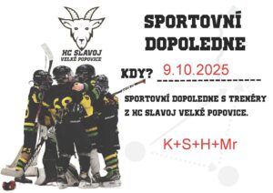 Kdy? 9. 10. 2025 Sportovní dopoledne s trenéry z HC SLavoj Velké Popovice.