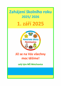 1. září 2025 Již se na Vás všechny moc těšíme! celý tým MŠ Mnichovice