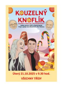 Úterý 21.10.2025 v 9.30 hod. VŠECHNY TŘÍDY Pohádka o smolaři a nalezeném štěstí.