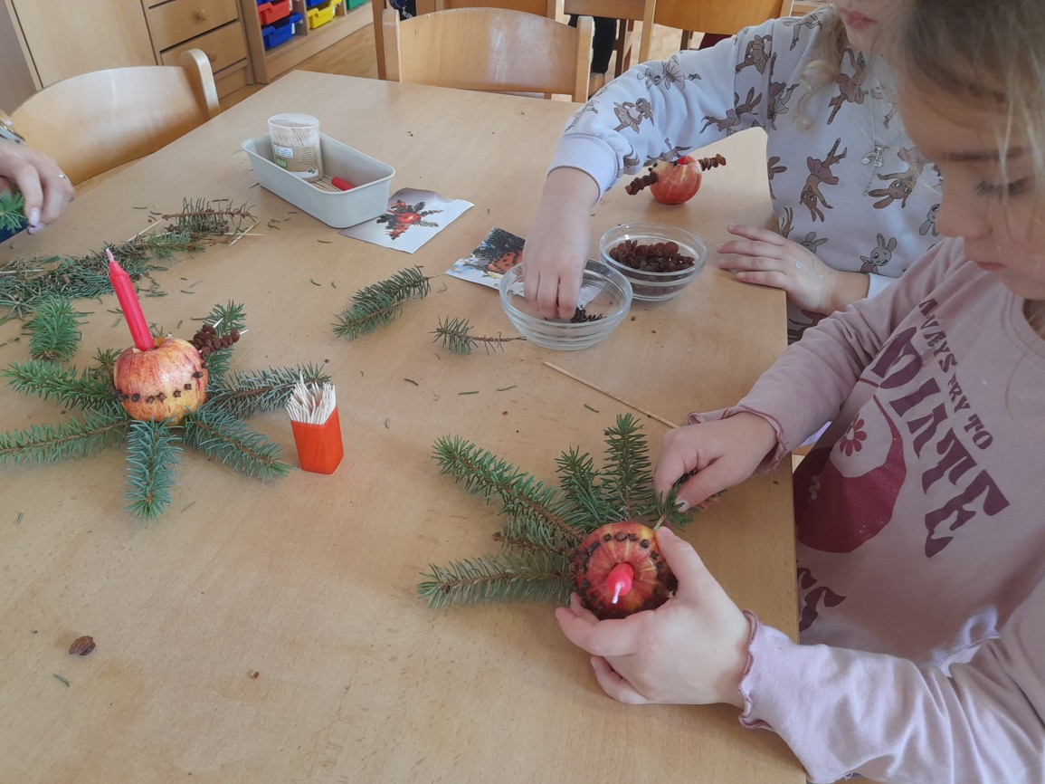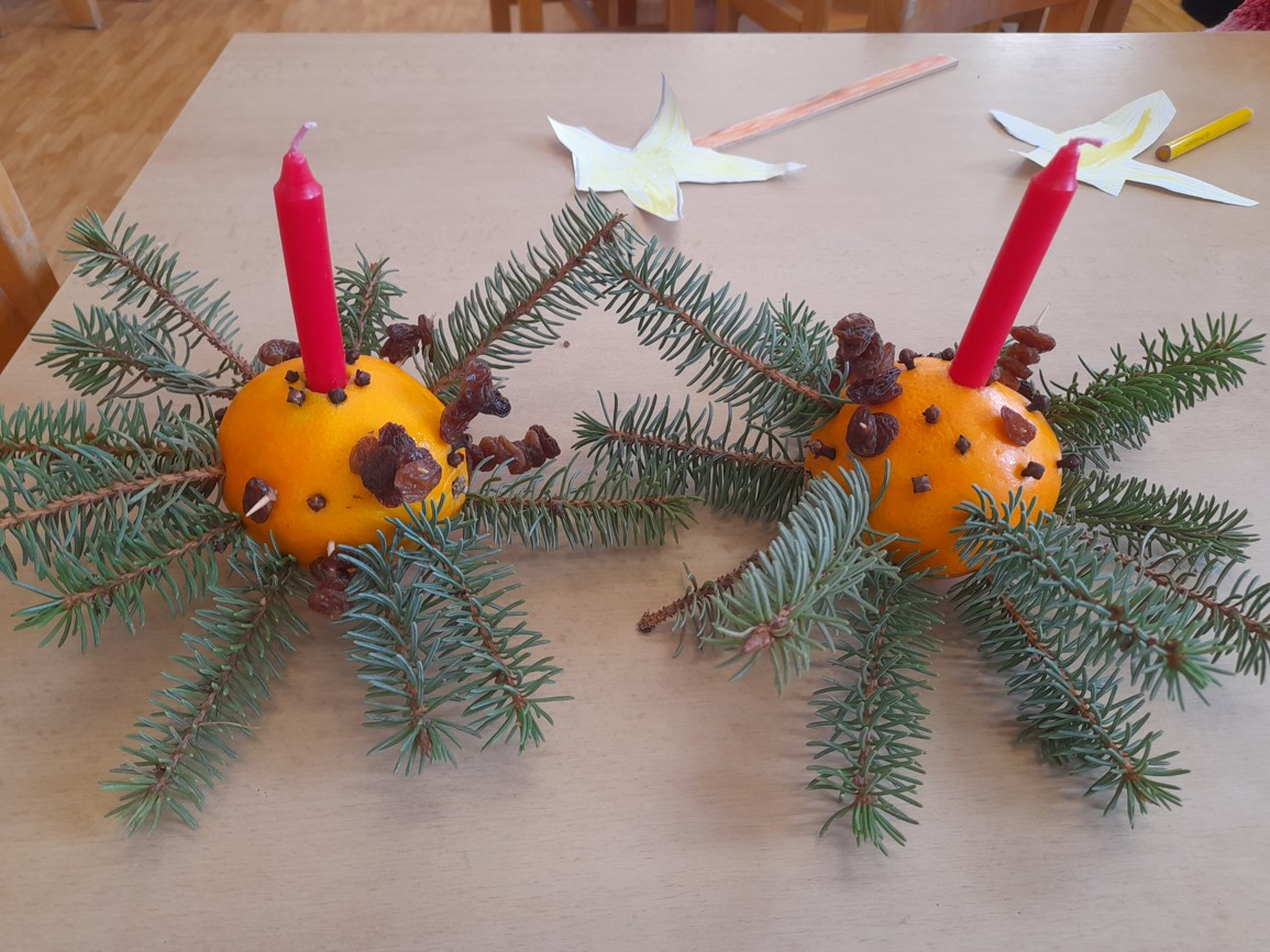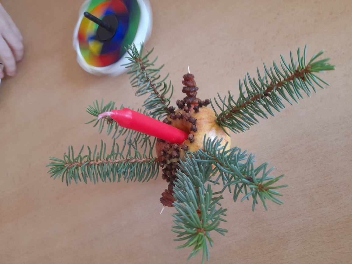 Jehličí provonělo celou třídu a vznikli z něj svícínky na ozdobu stolečků.