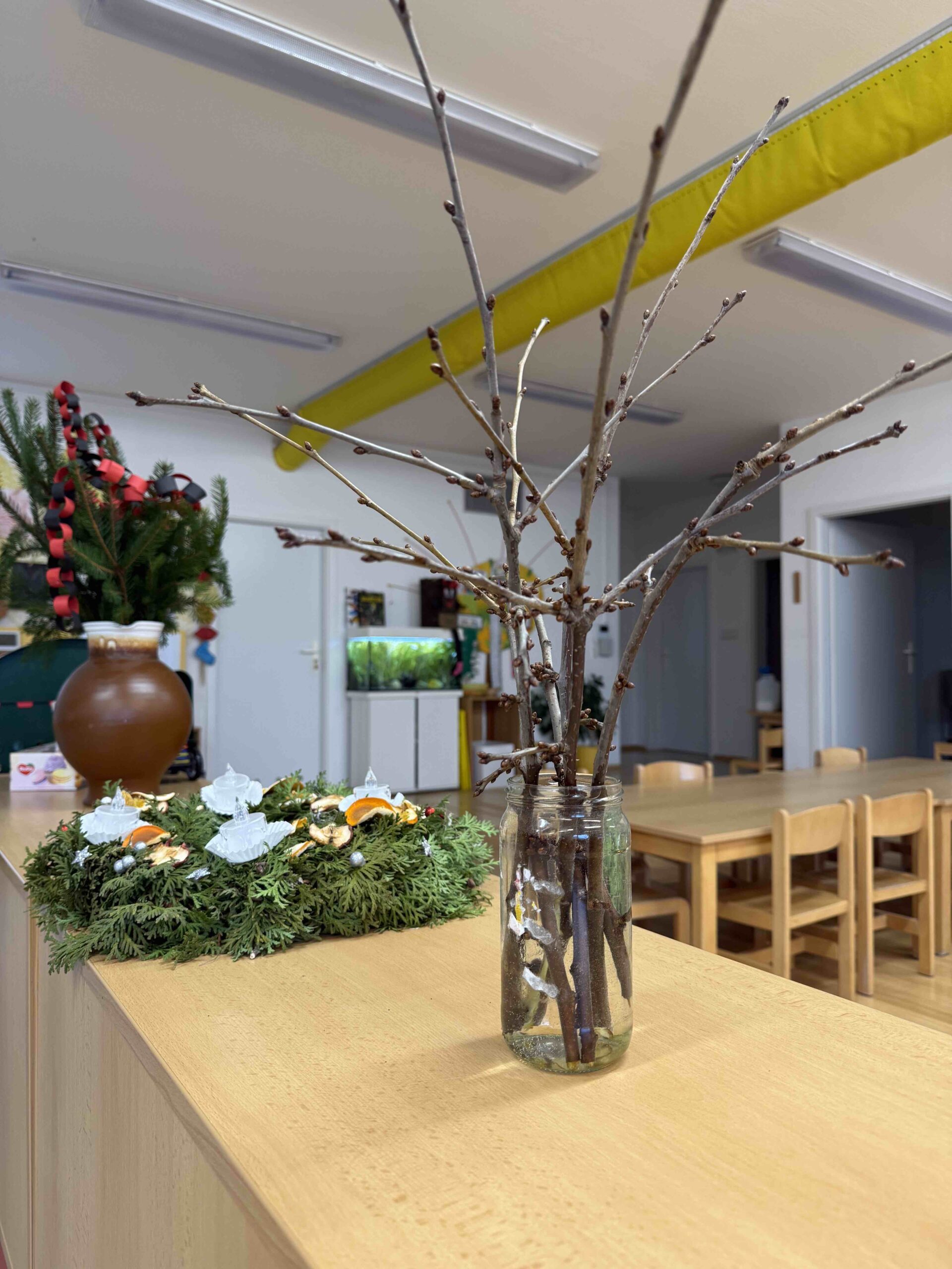 Nastříhali jsme větvičky do vázy, stejně jako naši předkové. Teď už jen budeme čekat jestli nám na Štědrý den vykvetou.