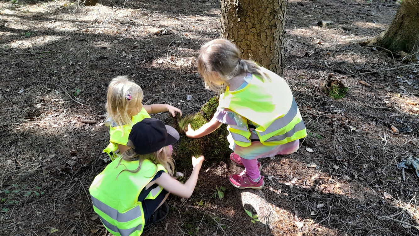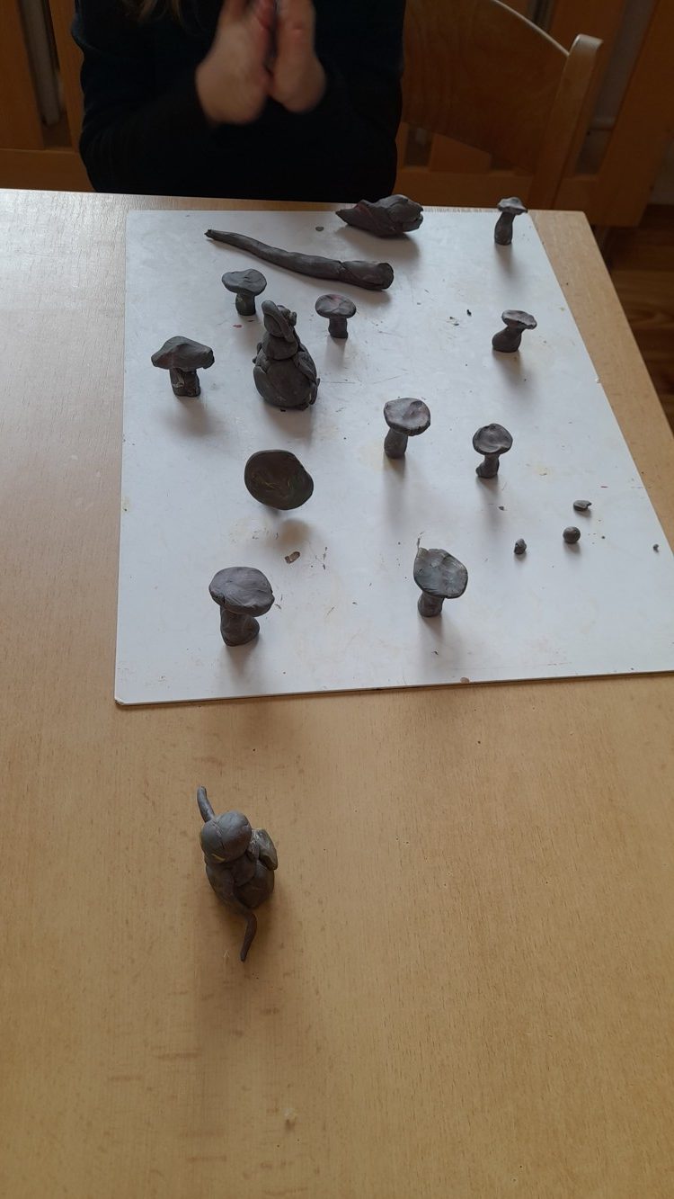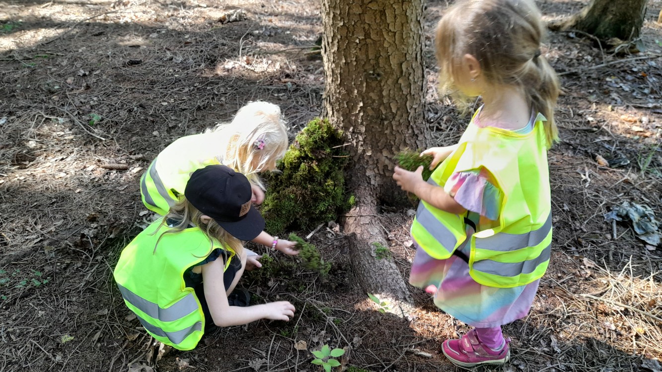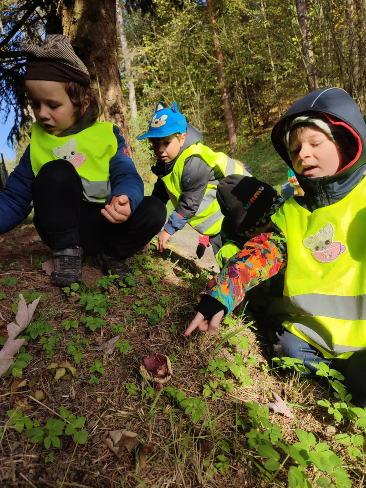 Během září a října jsme využili krásného počasí a vydali se do lesa bádat. Nejprve jsme poslouchali, co všechno v lese slyšíme a vidíme, poznávali různé zvuky a pátrali po stopách zvířátek, které jsme našli. Děti hádaly, komu mohou nalezené stopy patřit. Poté si zkusily změřit, jak je který strom tlustý a zahrály si hru na stromové chňapáky a podle obrázku hledaly různé druhy stromů – malé, velké, hubené i tlusté. Nakonec jsme se pustili do hledání hub, učili jsme se rozlišovat, které jsou jedle a nejedlé. Děti se naučily vnímat přírodu všemi smysly a užily si den plný objevování a dobrodružství v kouzelném lese.