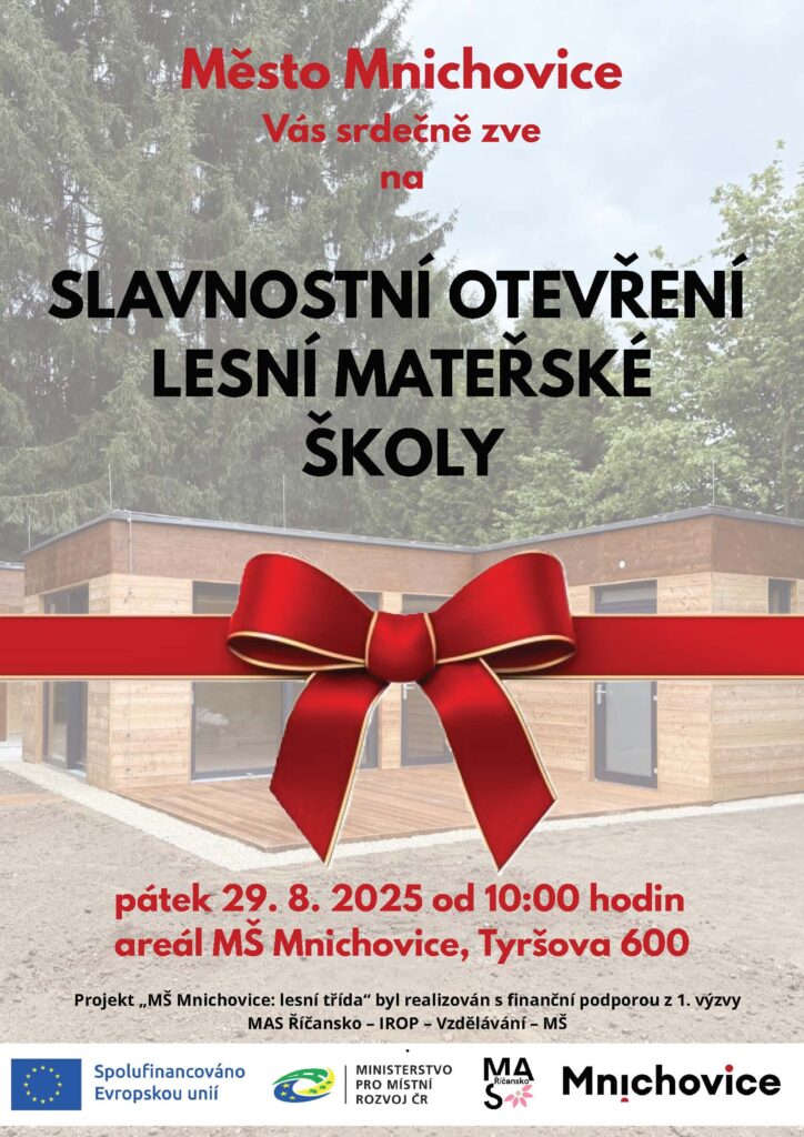 Město Mnichovice Vás srdečně zve na slavnostní otevření lesní mateřské školy.